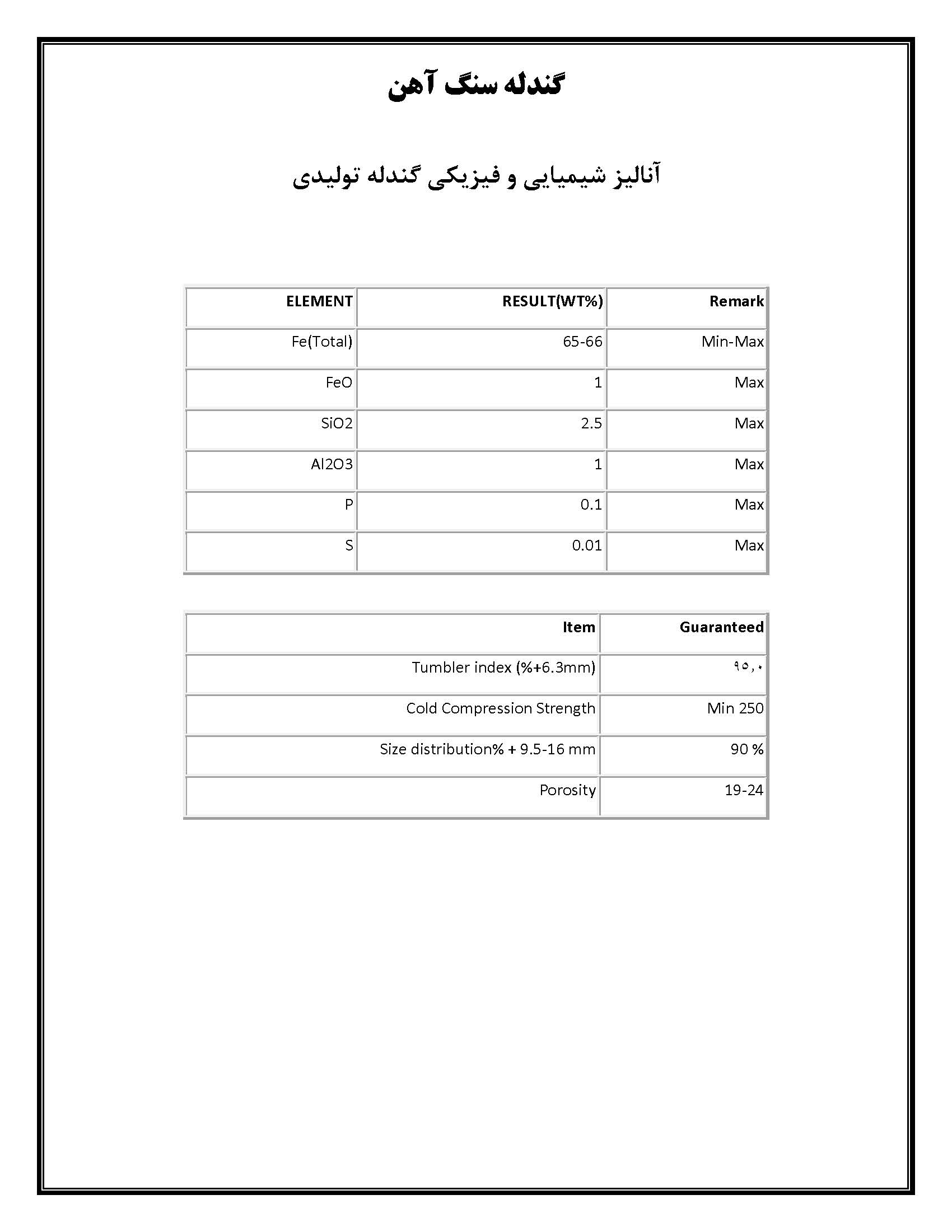 نام کارخانه:کارخانه تولید گندله سنگ آهن سیرجان